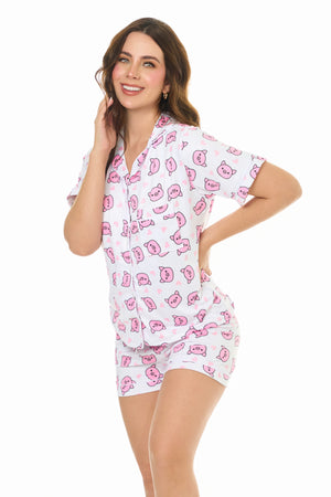Pijama short y camisa elaborado en algodón de piel de durazno. Tendrás la mejor forma de dormir! Elaborada en nuestra tela con textura super suave, cómoda y fresca en tendencia!