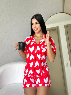 Pijama short y camisa elaborado en algodón de piel de durazno. Tendrás la mejor forma de dormir! Elaborada en nuestra tela con textura super suave, cómoda y fresca en tendencia!