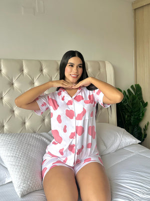 Pijama Referencia Botones Short Referencia Manchas Rosa