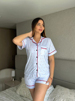 Pijama Referencia Botones Short Referencia Rayas Corazones Azul