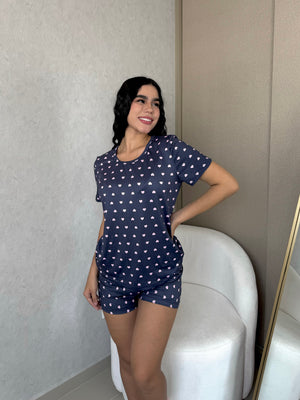 Pijama Referencia Total Estampado Azul Oscuro Corazones Rosa