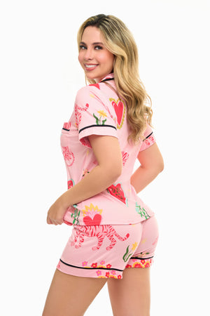 Pijama Referencia Botones. Print Tigres Rosa Rojo