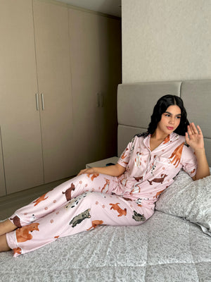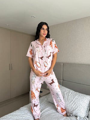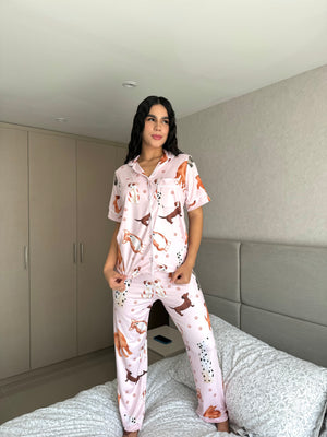 Pijama botones pantalón largo print estampado rosa perritos