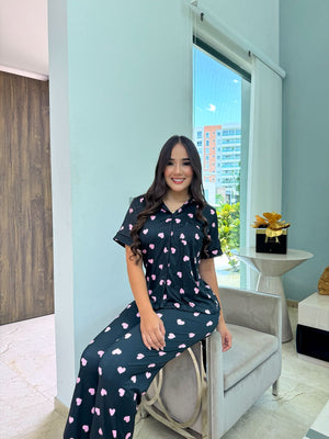 Pijama Botones Pantalón Largo Referencia Negro Corazones