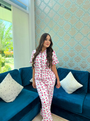 Pijama Botones Pantalón Largo Referencia Corazones Print