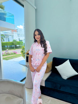 Pijama pantalón y camisa elaborado en algodón de piel de durazno. Tendrás la mejor forma de dormir! Elaborada en nuestra tela con textura super suave, cómoda y fresca en tendencia!