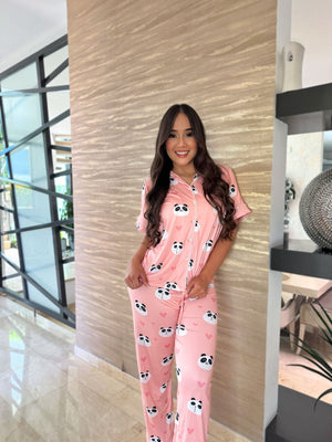 Pijama Botones Pantalón Largo Referencia Osito panda Rosa