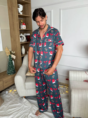 Pijama navideña de CABALLERO botones PANTALON referencia VERDE GORRITOS