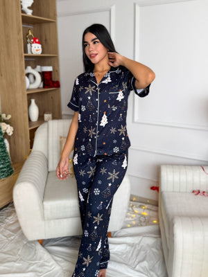 Pijama navideña de DAMA botones PANTALON referencia ARBOL NAVIDEÑO AZUL