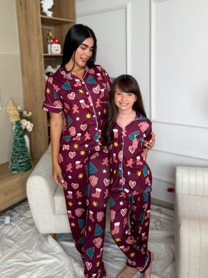 Pijama navideña de NIÑA botones PANTALON referencia VINOTINTO NAVIDAD
