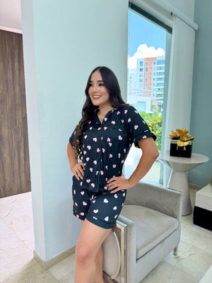 Pijama Referencia Botones Short Referencia Negro Corazones